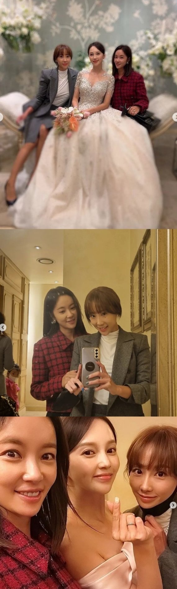 웨딩드레스를 입은 아유미를 사이에 두고 육혜승, 황정음이 함께 '슈가 인증샷'을 남겼다. 또 다른 멤버 박수진은 현장에는 오지 않은 것으로 보인다.