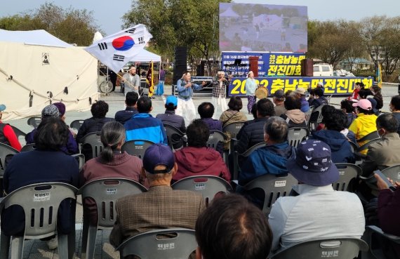 전국농민회(이하 전농) 충남도연맹은 3일 충남 부여군 서동공원 인근에서 농민 500여 명이 참여한 가운데 충남농민전진대회를 열었다.