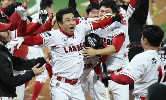 SSG는 7일 인천 SSG랜더스필드에서 열린 2022 신한은행 쏠 KBO 포스트시즌(PS) KS 5차전에서 9회말 터진 김강민의 끝내기 3점포에 힘입어 5-4로 승리했다.