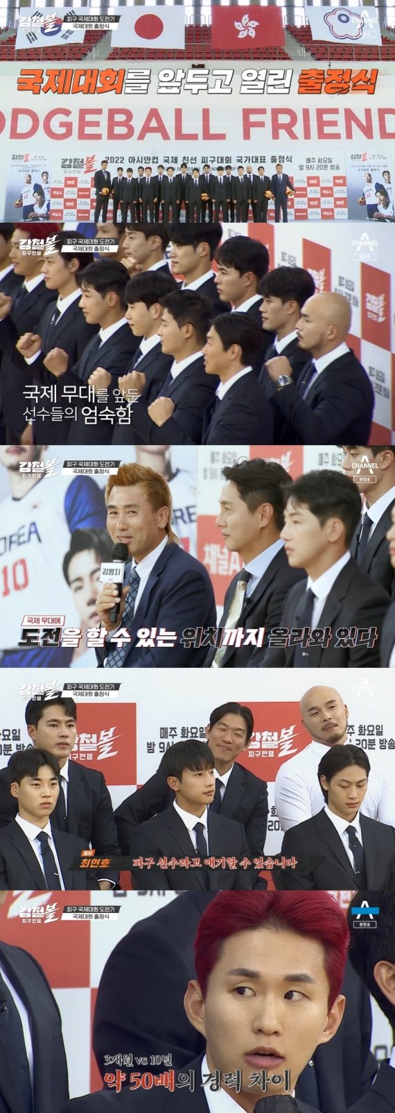 8일 오후 방송된 채널A 예능 프로그램 '강철볼-피구전쟁'에서는 강철국대 선수 및 감독, 코치진이 피구 국제대회를 하루 앞두고 출정식을 가졌다.