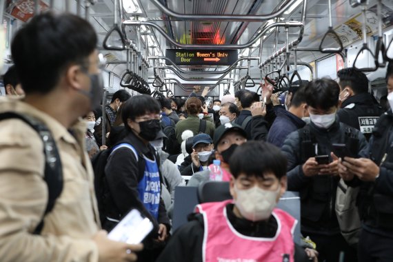 전장연은 당초 이달 1일부터 매일 오전 지하철 시위를 이어갈 예정이었지만 이태원 참사 추모 기간을 두고 전날부터 시위를 재개했다.