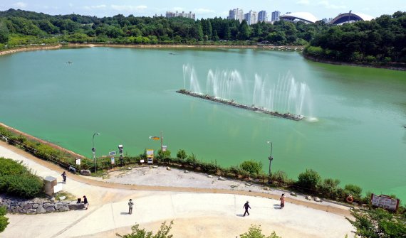 광주시와 서구는 중앙공원 1지구 사업지 내 풍암호수의 수질 개선을 위해 담수량을 기존 44만t에서 16만t으로 줄이고 수심도 6m에서 1.5m로 낮추는 안을 검토하고 있다.