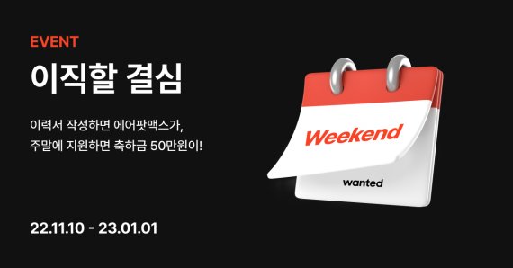 이번 이벤트는 이직을 고민하는 직장인과 취업준비생을 응원하기 위해 두 가지 혜택을 준비했다. 주말 동안 원티드를 통해 채용 공고에 지원하면 서류 합격자 중 매주 1명을 추첨해 축하금 50만원을 지급한다. 원티드가 최종 합격자에게 제공하는 합격 보상금 50만원과는 별도의 혜택이다.