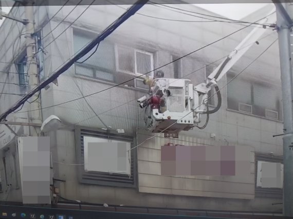 [군산=뉴시스]이동민 기자 = 14일 오전 9시 23분께 전북 군산시 나운동의 상가건물 2층 노래방에서 불이 났다.