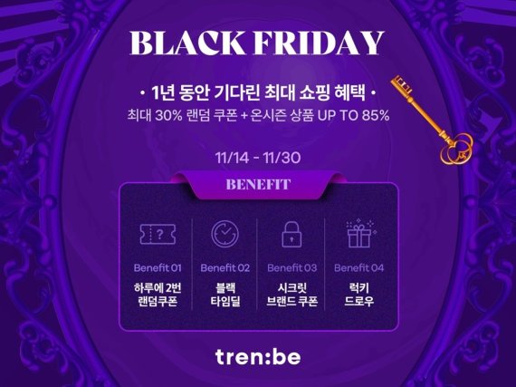 트렌비 관계자는 "블랙프라이데이 시즌을 맞아 트렌비에서만 누릴 수 있는 즐거운 쇼핑 경험을 제공하는데 초점을 맞췄다"며 "브랜드별로 가격 상승폭이 크고 내년 초에도 비슷한 추이가 예상되므로 이 기간이 많은 혜택으로 제품을 구입할 적기"라고 말했다.