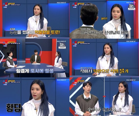 랄랄은 지난 14일 방송된 MBC에브리원 '쇼킹받는 차트'에서 배성재, 이승국과 함께 '누가 죄인인가'라는 주제로 열띤 이야기를 나눴다.