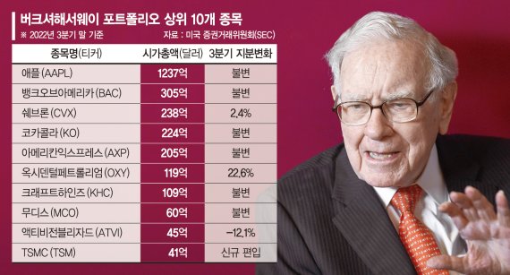 버크셔는 TSMC 이외에 건자재업체 루이지애나퍼시픽(2억9700만달러)과 금융사 제프리스파이낸셜그룹(1300만달러) 주식도 신규 매입했다. 또 에너지업체 쉐브론과 옥시덴털페트롤리엄, 화학업체 셀러니즈, 엔터테인먼트업체 파라마운트 글로벌에 대해서는 지분을 확대했다.