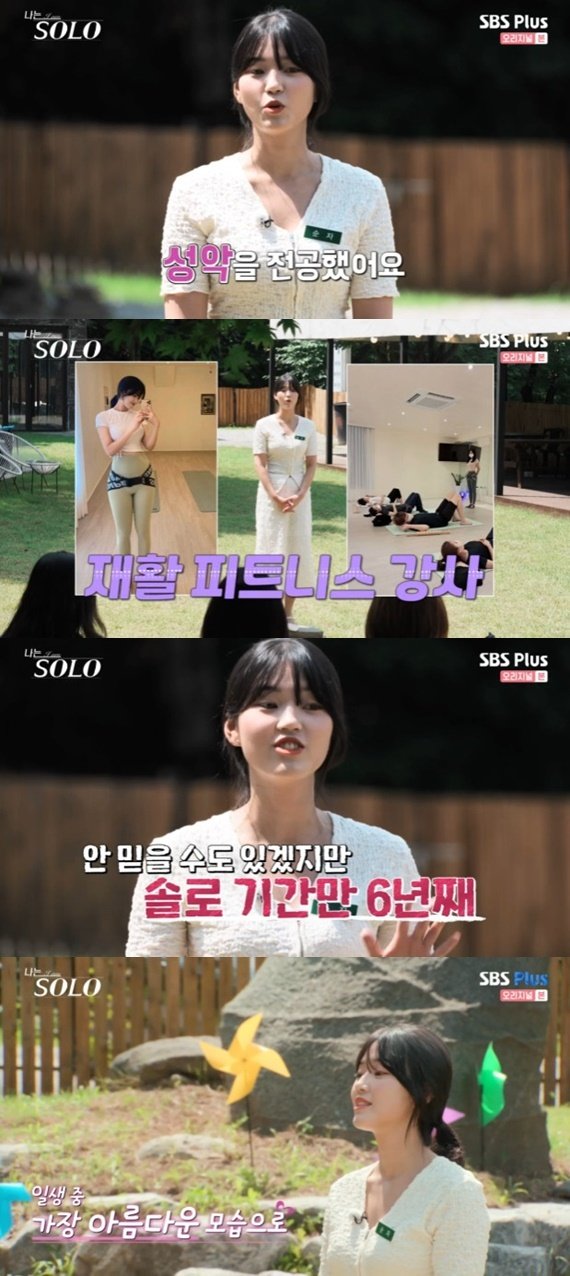 순자는 성악을 전공했다고 밝히며 "지금은 재활 피트니스 강사로 일하고 있다"라고 부연했다. 이어 순자는 "안 믿으실 수 있겠지만 솔로 기간이 6년째다"라고 고백하며 언니의 지원으로 '나는 솔로'에 출연했다고 고백해 모두를 놀라게 했다.