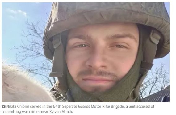 보도에 따르면 치브린은 제64독립근위차량화소총여단 소속으로 우크라이나에서 4개월 이상을 보냈다. 이 부대는 지난 3월 키이우 주(州)에서 전쟁 범죄를 저지른 혐의를 받고 있다.