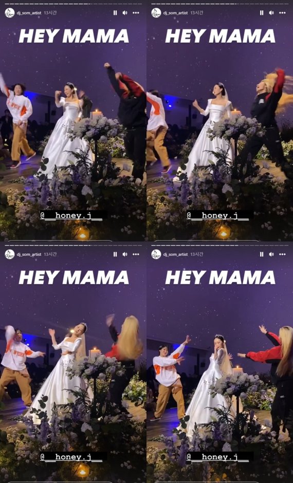 리정과 효진초이, 노제는 따로, 또 같이 축하공연을 선사하기도 했다. 리정은 블랙핑크 '핑크 베놈'에 맞춰 격렬한 안무를 선보이는가 하면, 효진초이, 노제와 함께 귀여운 춤을 추다 허니제이를 불러 다함께 '헤이 마마'를 추기도 했다. 새하얀 웨딩드레스(신부예복)를 입은 허니제이는 드레스를 입고 있음에도 댄서들과 함께 몸에 익은 '헤이 마마'를 능수능란하게 선보여 하객들의 박수를 받았다.