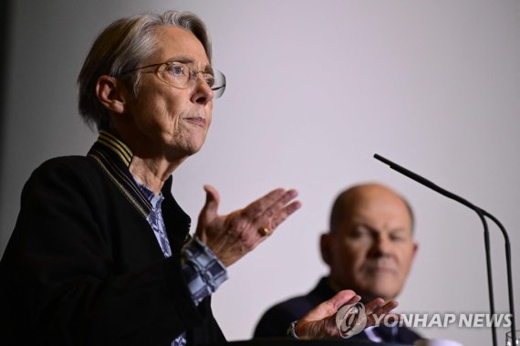 독일 베를린에서 기자회견하는 프랑스 총리 German Chancellor Olaf Scholz (R) and French Prime Minister Elisabeth Borne deliver a joint press conference after signing the energy solidarity pact at the Chancellery in Berlin on November 25, 2022. (Photo by John MACDOUGALL / AFP) (파리=연합뉴스) 현혜란 특파원 = 엘리자베트 보른 프랑스 총리가 축구 선수들이 추구하는 가치를 표현할 수 있도록 허용해야 한다고 말했다.