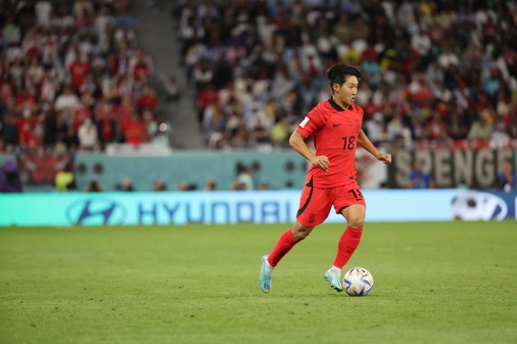 (도하(카타르)=뉴스1) 안영준 기자 = 조별리그 1차전 가나와의 경기에서 후반 교체 투입돼 흐름을 바꿨던 조규성(전북)과 이강인(마요르카)이 가나전에서도 기회를 얻을 수 있을까.