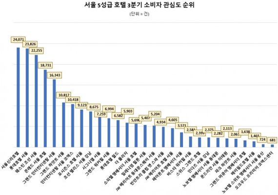 이번 조사에서는 신라호텔에 이어 롯데호텔 서울이 2만3826건으로 2위를 차지했다.