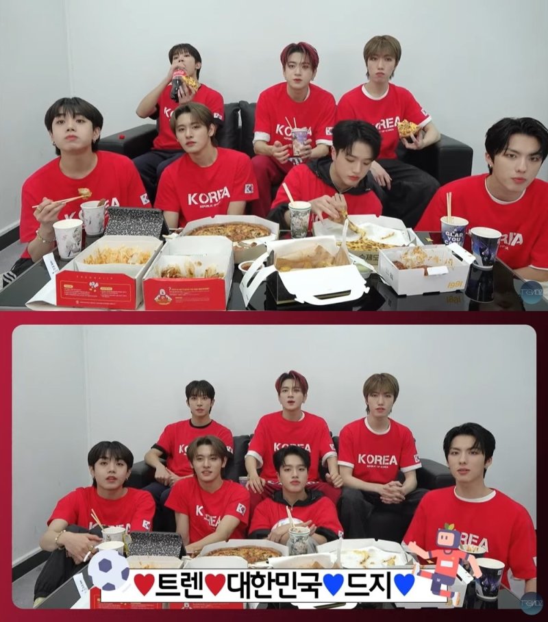 공개된 라이브 영상에서 트렌드지는 붉은 악마를 떠오르게 하는 레드 스타일링을 통해 귀여운 열정을 드러낸 것도 잠시, 경기 전 치킨 먹방을 선보이는 동시에 설렘과 긴장감 가득한 모습을 내비쳐 팬들의 흐뭇한 미소를 이끌어냈다.