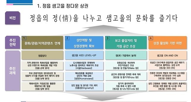 정읍 ‘샘고을 정다운상권’ 활성화 사업에는 내년부터 2027년까지 5년간 최대 80억원이 지원된다. 사업은 샘고을시장 및 주변상권(중앙로·우암로·새암로)을 중심으로 추진된다.