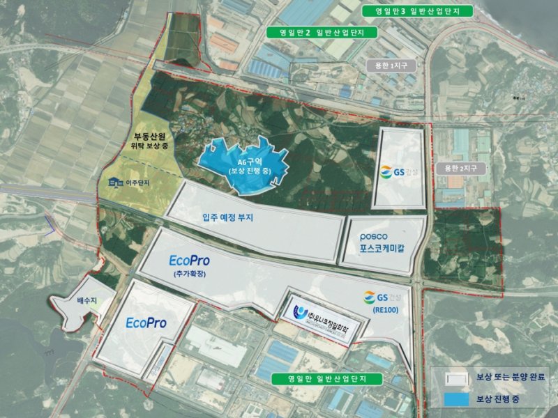 영일만4일반산업단지는 북구 흥해읍 용한리, 곡강리 일대 78만 평에 총사업비 7621억 원을 투입해 조성 중이다. 현재 4산단 전체 토지 보상율은 약 70%로 전체 토지의 3분의 2 이상 보상이 완료됐다. 최근 에코프로와 포스코케미칼, GS건설 등 이차전지 관련 대기업의 투자가 잇따르고 있어 총 분양률은 90%(입주 예정 기업 포함)에 육박하고 있다.