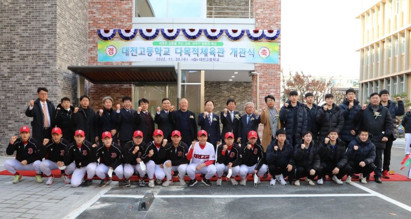 대전고(교장 윤장순)는 시교육청 예산 29억원을 지원받아 야구부 및 농구부 경기력 향상과 학생들의 기초체력 증진을 위한 다목적체육관을 건립, 지난 30일 개관식을 가졌다.