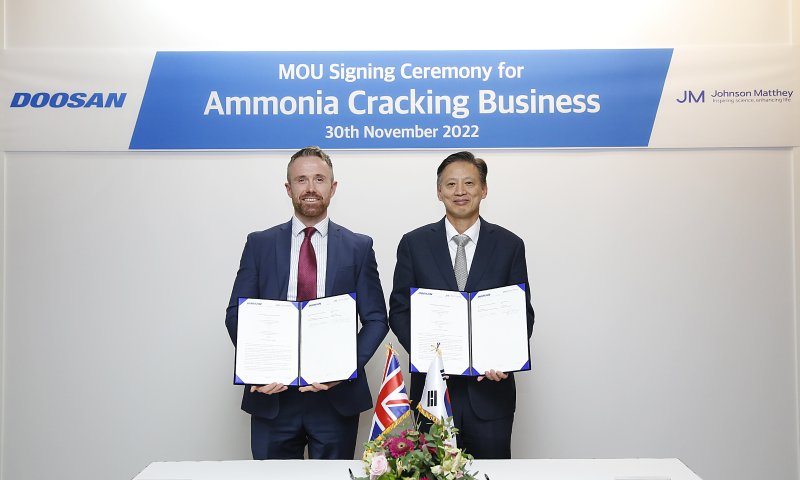 두산에너빌리티는 영국 암모니아 크래킹 솔루션 업체 존슨 매티(Johnson Matthey)社와 ‘암모니아 크래킹 사업 협력을 위한 업무협약(MOU)’을 체결했다고 1일 밝혔다.