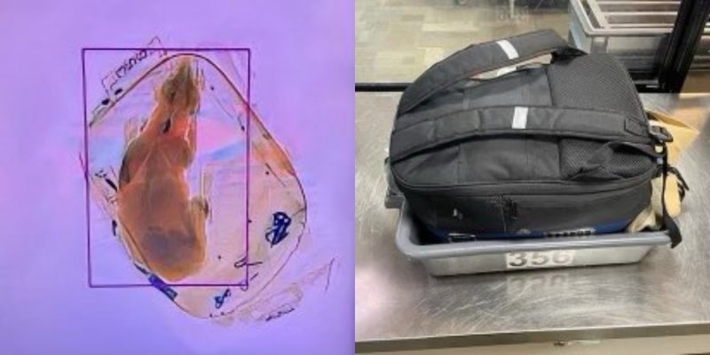 미국 위스콘신주의 데인 카운티 리저널 공항 교통안전청 보안요원은 엑스레이 짐 검색 중 기내용 가방에 작은 개 한 마리가 웅크린 상태로 들어있는 것을 발견했다.