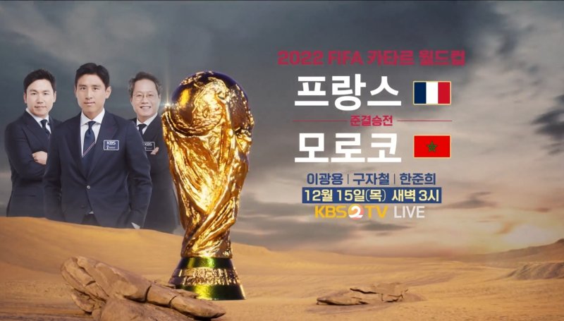 오는 15일 오전 3시 프랑스와 모로코의 준결승전이 펼쳐진다. KBS 2TV에서는 구자철·한준희 해설위원과 함께 이광용 캐스터가 중계에 나선다.