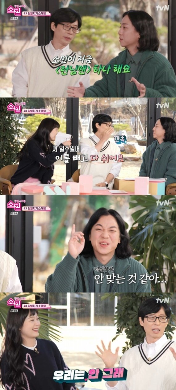 그러자 유재석이 "소민이 지금 '런닝맨' 하나 한다"라고 폭로해 넉살을 당황하게 했다.