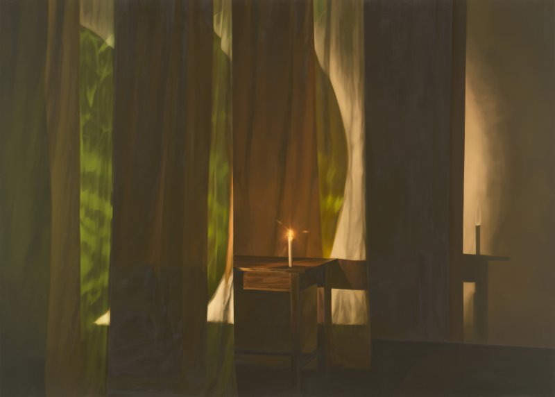겹겹이 드리워진 천, 그 앞에 놓인 초록색 유리구, 의도적으로 각도를 맞춘 듯 한 조명과 여린 빛을 내고 있는 초. 각각의 사물들이 저마다의 방법으로 시간의 결, 빛의 결을 드러내고 있는 작품이다. 작가가 시도하는 빛의 사유가 한층 심화된 분위기다. 전시는 31일까지.
