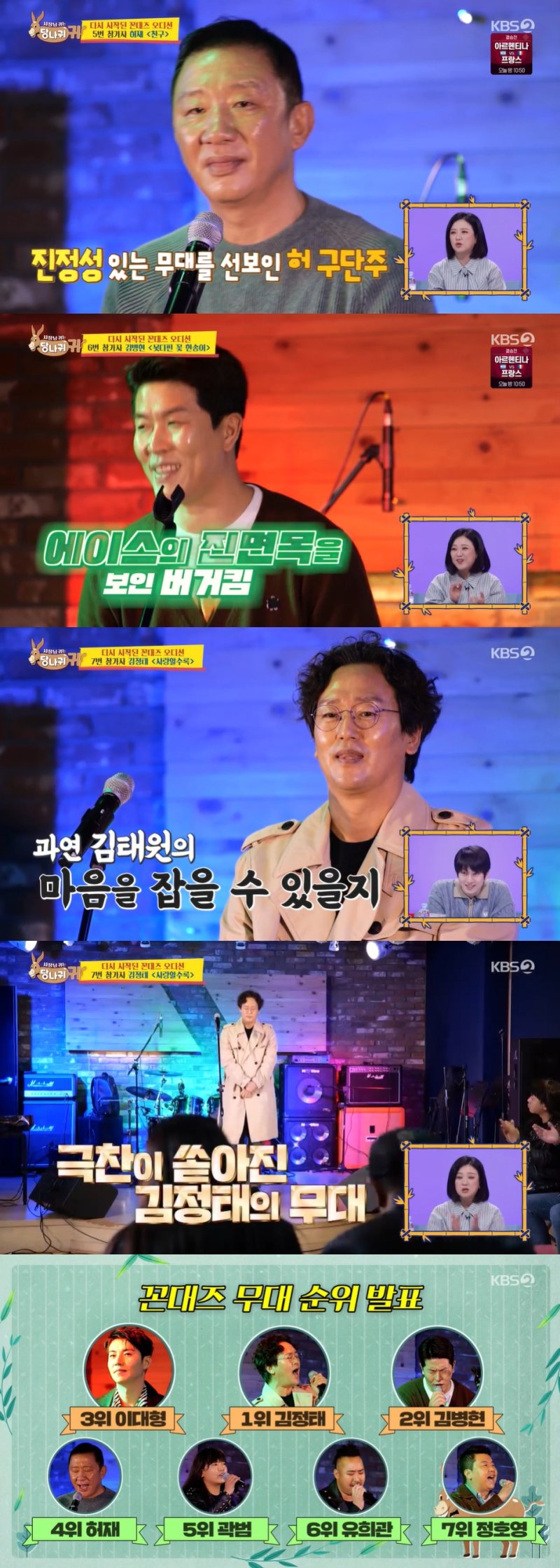 KBS 2TV '사장님 귀는 당나귀 귀' 방송 화면 캡처 (서울=뉴스1) 이아영 기자 = 김정태가 '사랑할수록'을 부르고 김태원의 극찬을 들었다.