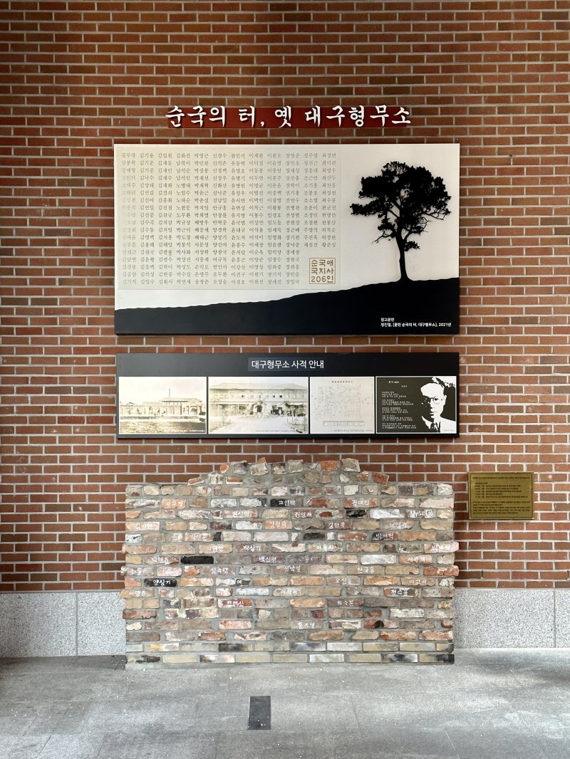 추모의 벽에는 지난해 독립운동정신계승사업회에서 출간한 '묻힌 순국의 터, 대구형무소'에서 밝힌 순국 애국지사 206명(서훈 202명, 미서훈자 4명)의 명단이 등재됐다.