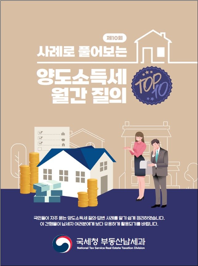 이번 양도세 월간질의 톱텐은 최종회로, 국세청은 그간 펴낸 1~10회를 모은 e북을 추가 발간해 연말 홈페이지에 올릴 예정이다.