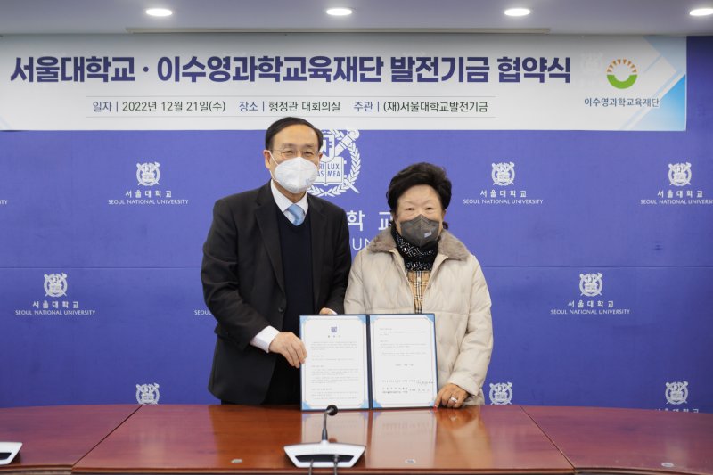 [서울=뉴시스]허서우 인턴 기자 = 서울대는 이수영과학교육재단 이수영 이사장(서울대 법학 학사 1956-1960·광원산업 회장)이 지난해에 이어 모교인 서울대에 '이수영과학교육재단 노벨상 육성 기금'으로 15억원을 쾌척했다고 21일 밝혔다.