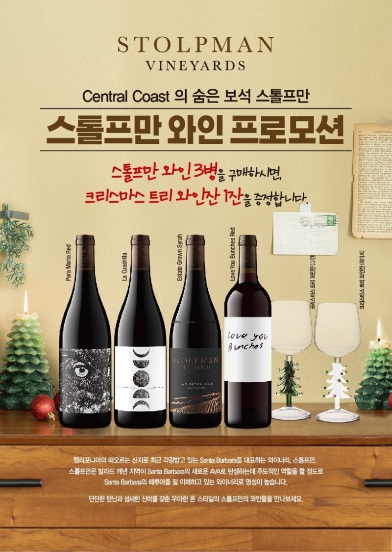 (서울=뉴스1) 한지명 기자 = 롯데칠성음료는 연말까지 미국산 와인 '스톨프만' 4종 구매 고객에게 크리스마스 파티용 와인잔 증정 행사를 진행한다고 22일 밝혔다.