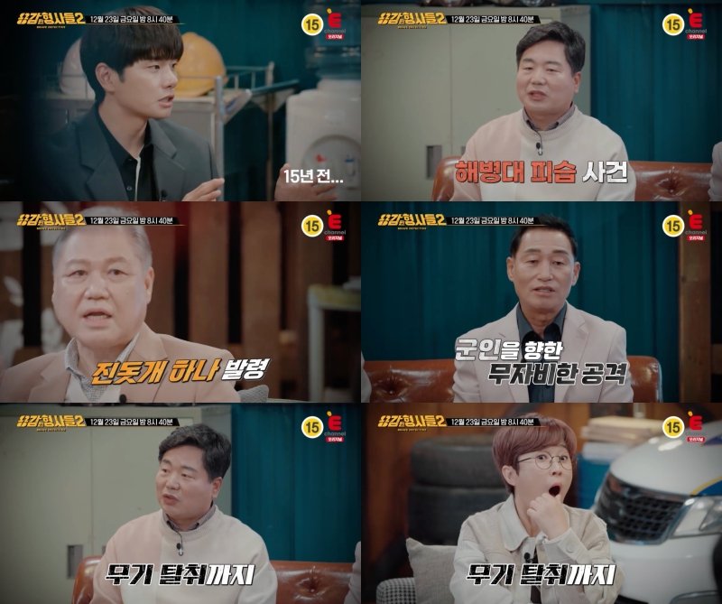 23일 오후 8시40분 방송하는 티캐스트 E채널 '용감한 형사들2'에서는 지난 2007년 발생한 해병대 총기 탈취 사건이 재조명된다. 당시 수사에 나섰던 경기시흥경찰서, 강화경찰서 형사들이 발로 뛴 수사 일지를 공개한다.