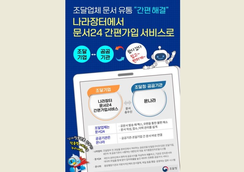 "조달 업체 공문서 이젠 온라인으로 보내세요"나라장터-문서 24 연계로 공문서 유통 온라인화