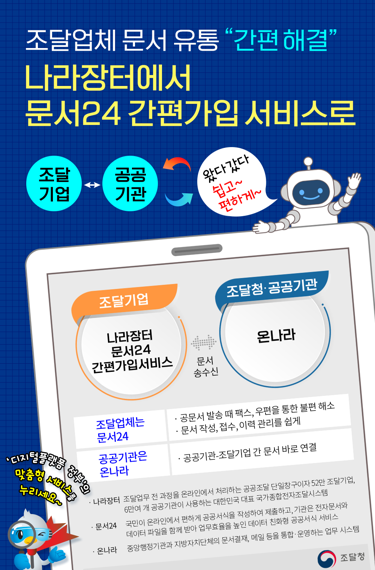 나라장터-문서24 연계로 조달업체-조달청·공공기관 간 공문서유통 온라인화