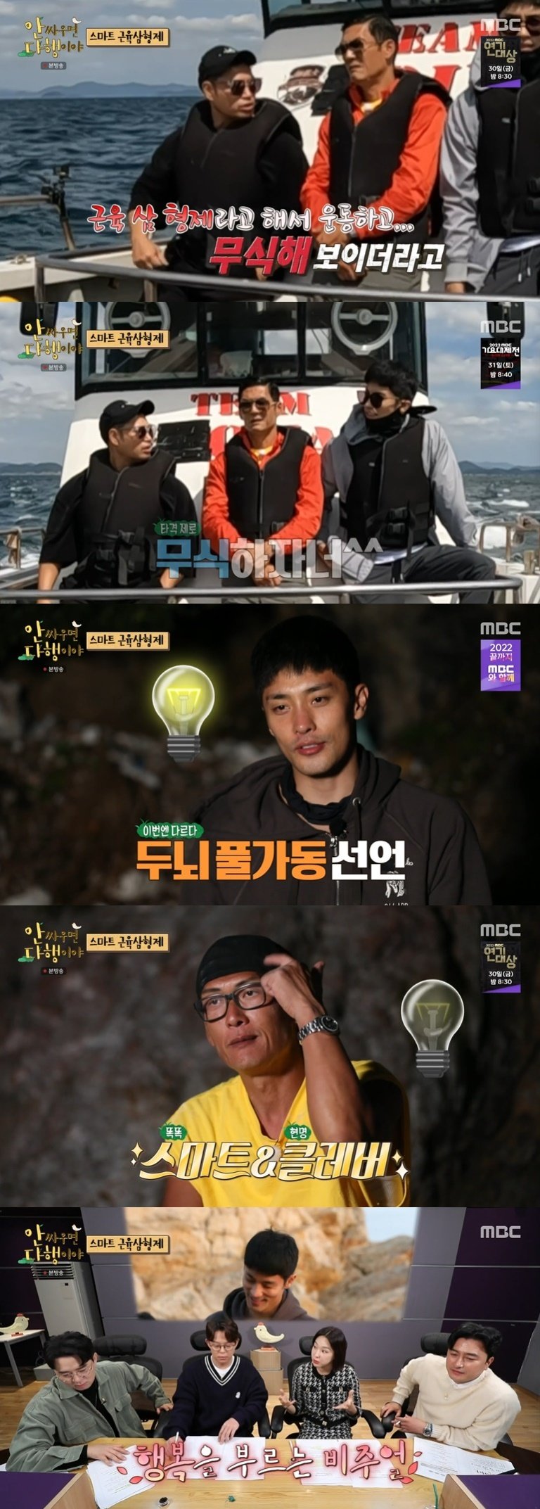 26일 오후 방송된 MBC 예능 프로그램 '안싸우면 다행이야'에서는 god 멤버 박준형, 헬스 트레이너 양치승, 배우 성훈 등 '근육 삼형제'가 다시 섬을 찾았다.