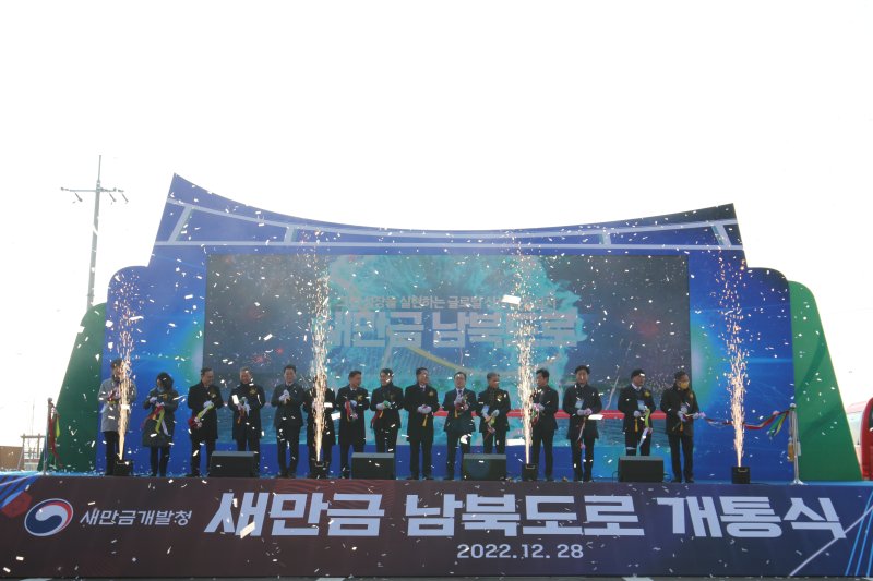 [군산=뉴시스]고석중 기자 = 새만금개발청이 28일 새만금 남북도로 1단계 시점부인 엑스포교차로에서 개통식을 개최했다.