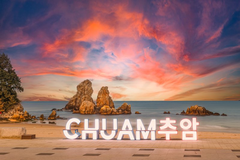'추암' 글자를 이용해 설치한 조형물은 낮에는 의자로, 야간에는 빛으로 추암을 알리는 랜드마크 포토존으로 활용한다.