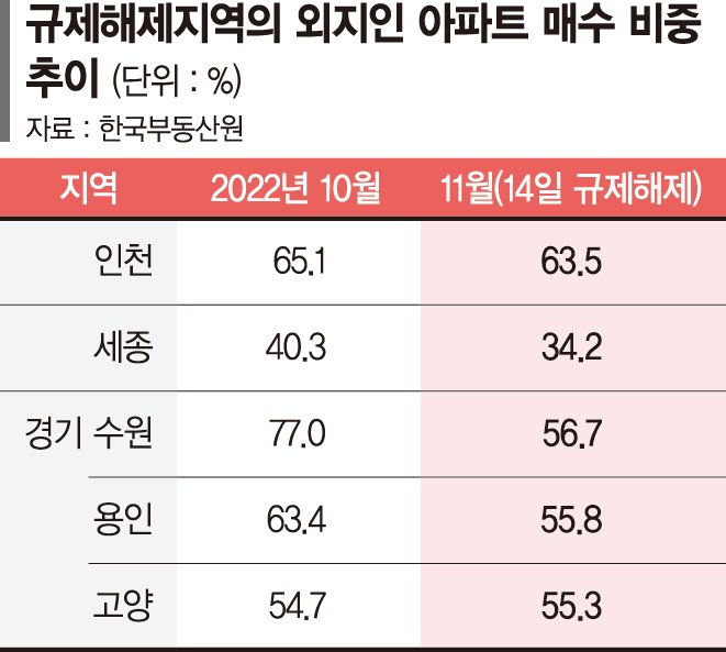 박 위원은 "아직 추가적인 금리인상이 예정돼 있기 때문에 규제해제지역에 대한 외지인 투자도 급급매로 제한적이다"며 "물량이 적어 전체 장세에 영향을 미칠 정도는 아니다"라고 말했다. 이어 "금리인상 랠리가 멈출 때까지는 지금의 하락장세가 크게 변하지 않을 것"이라고 덧붙였다.