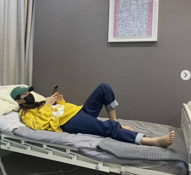 사진 속에는 소유가 병원 침대에 누워 있는 모습. 또 다른 사진에는 발에 반 깁스를 한 채 걷고 있는 모습도 담겼다.
