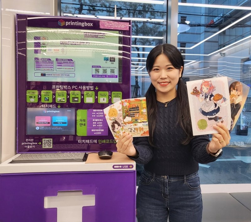 프린팅박스는 무인 출력 키오스크로 PC 또는 스마트폰에 저장된 사진이나 문서를 전용 앱 클라우드에 업로드한 뒤 인근 기기에서 출력할 수 있는 서비스다. 복사·스캔 등 기본 사무 업무는 물론 연말정산에 필요한 정부기관의 민원서비스도 이용할 수 있다.