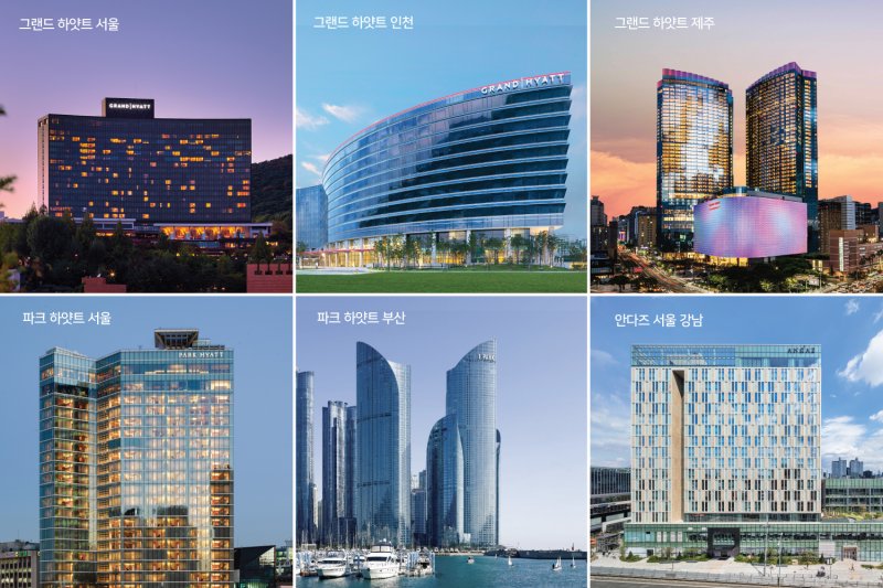 국내 하얏트 호텔은 △그랜드 하얏트 서울 △그랜드 하얏트 인천 △그랜드 하얏트 제주 △파크 하얏트 서울 △파크 하얏트 부산 △안다즈 서울 강남 등 6개다.