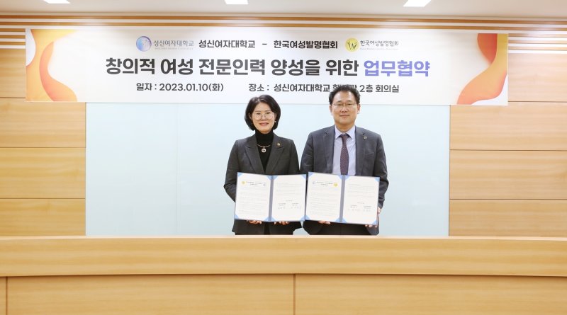 (서울=뉴스1) 이호승 기자 = 성신여자대학교(총장 이성근)가 한국여성발명협회(회장 김순선)와 '창의적 여성 전문인력 양성'을 위한 업무협약(MOU)을 체결했다고 12일 밝혔다.