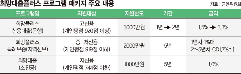 12일 금융위원회는 이같은 내용의 희망플러스 신용대출 개선 방안을 발표했다. 지난해 1월부터 시행 중인 희망플러스 신용대출은 코로나19로 피해를 입은 고신용 소상공인에 대해 최대 3000만원까지 저금리 자금을 공급하는 프로그램이다.