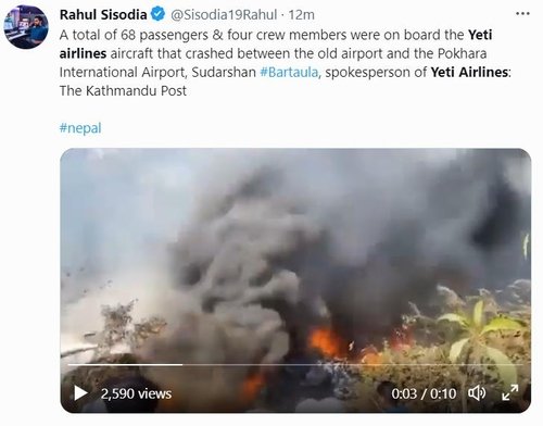 크리슈나 반다리 네팔군 대변인은 "비행기가 산산이 조각났으며 최소 16명이 사망했다"라며 "더 많은 시신이 수습될 것으로 보인다"라고 로이터 통신에 말했다.