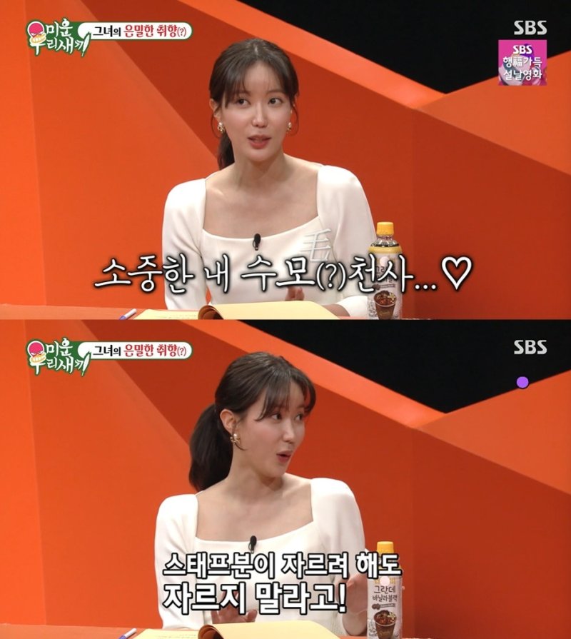 15일 오후 방송된 SBS '미운 우리 새끼'에서 임수향이 자신의 다리털을 수호천사처럼 지키고 있다고 밝혔다.