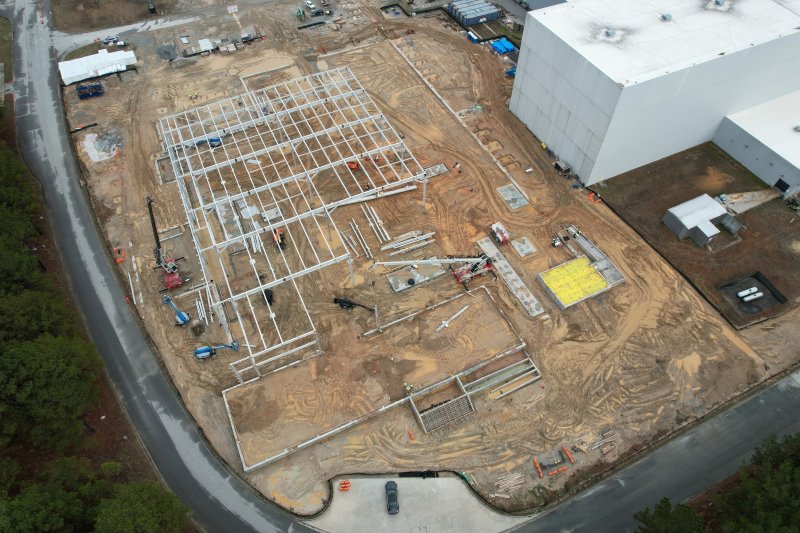 (커빙턴=뉴스1) 김종윤 기자 = 지난 9일(현지시간) 미국 조지아주 애틀랜타 공항에서 차로 약 40분 달리자 울창한 숲속 사이로 SKC의 미국법인 SKC inc. 부지가 눈에 들어왔다. 현장에 들어서자 SKC의 모태 사업으로 불린 필름 공장은 여전히 운영 중이었다. 바로 옆 부지에선 SKC의 반도체 글라스 기판사업 자회사 앱솔릭스의 생산시설 공사가 한창이었다. 공사 초기 단계로 약 20m 높이의 철근 구조물과 건설 장비가 현장을 지키고 있었다.