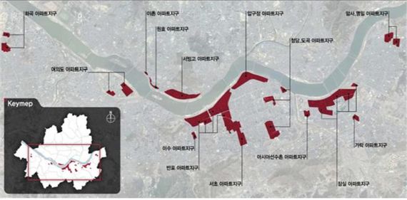 이번 결정으로 아파트지구로 남게 되는 곳은 10개 지구다. 면적으로는 약 2.5㎢ 이며 57개 단지다. 원효, 화곡, 아시아선수촌, 청담·도곡 등 4개 지구는 지구 전체를 폐지하고 반포, 서초, 서빙고, 이수, 여의도, 압구정, 이촌, 잠실, 가락, 암사명일 등 10개 지구는 구역계를 축소한다.