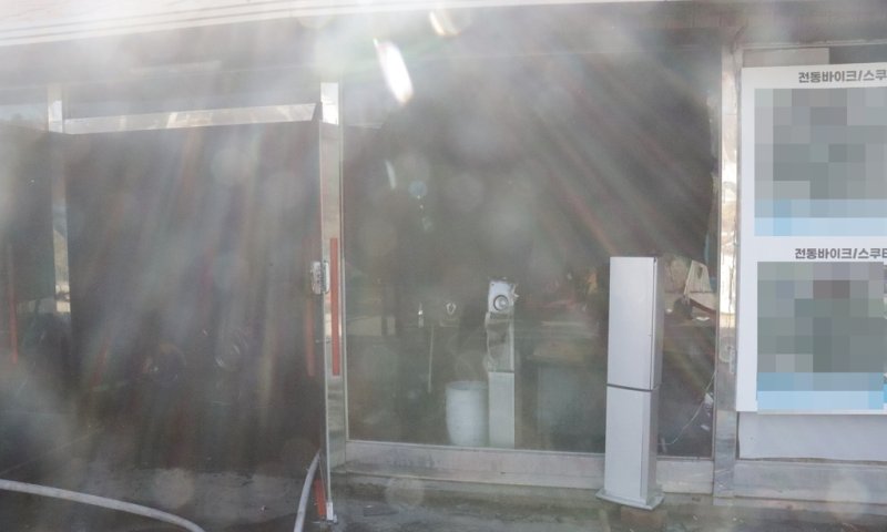 이 불로 전동바이크 15대가 그을음을 입는 등 일부 타고 가게 내부 50㎡와 가전제품 등이 탔다.