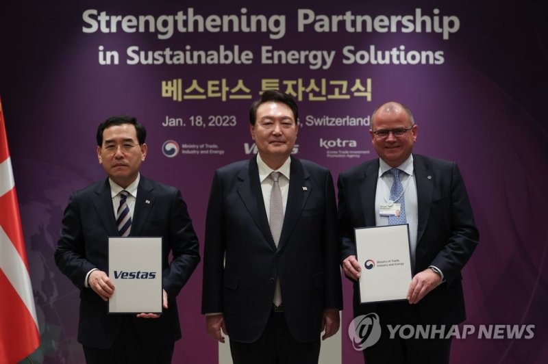 지난 18일(현지시간) 베스타스의 헨릭 앤더슨 최고경영자(CEO)는 스위스 다보스의 한 호텔에서 이창양 산업통상자원부 장관에게 3억 달러(약 3천700억원)의 투자를 신고했다.