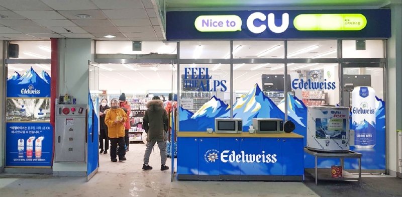 CU가 주류 브랜드와 협업해 팝업 스토어를 선보이는 것은 이번이 처음이다. CU는 에델바이스 팝업 스토어 운영 기간 동안 고객 반응과 매출 동향 등을 종합적으로 고려해 앞으로 전국의 다양한 장소와 입지에서 팝업 스토어를 운영할 예정이다.